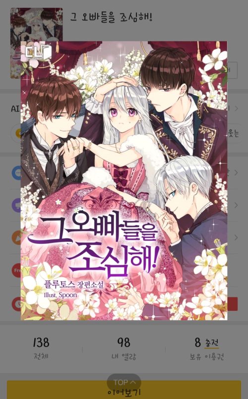 아무튼 제 취향으로는 별 다섯개 주고 싶은 카카오페이지의 회귀물 소설 그 오빠들을 조심해! 였습니다.